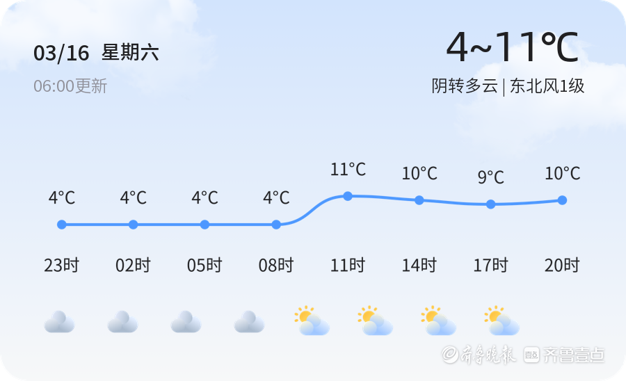 【日照天气】3月16日,温度4℃~11℃,阴转多云