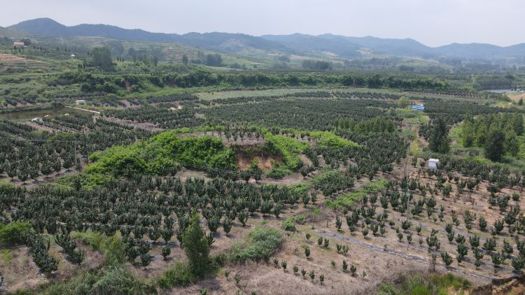 俯瞰博山镇上瓦泉村大榛子园,一排排的大榛子树,让村庄充满生气。