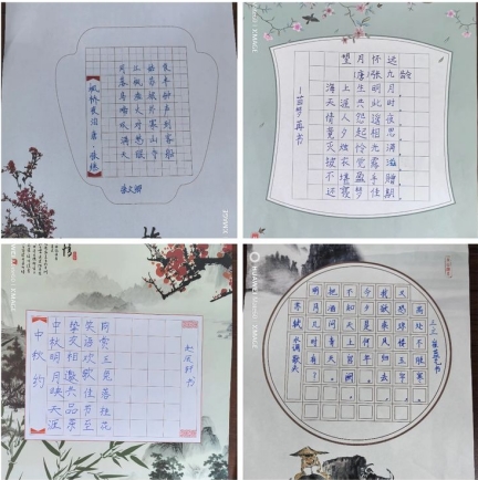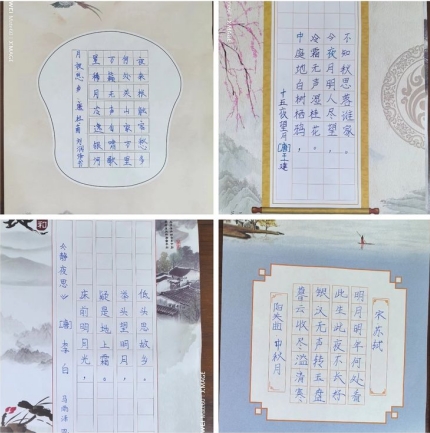 一首首流传千古的诗词佳作,一个个仰望明月的思乡游子,古人借中秋圆月表达对远方家乡的思念。时值中秋佳节,同学们用漂亮的书法书写传承,感受这份亘古绵延的深厚情感。