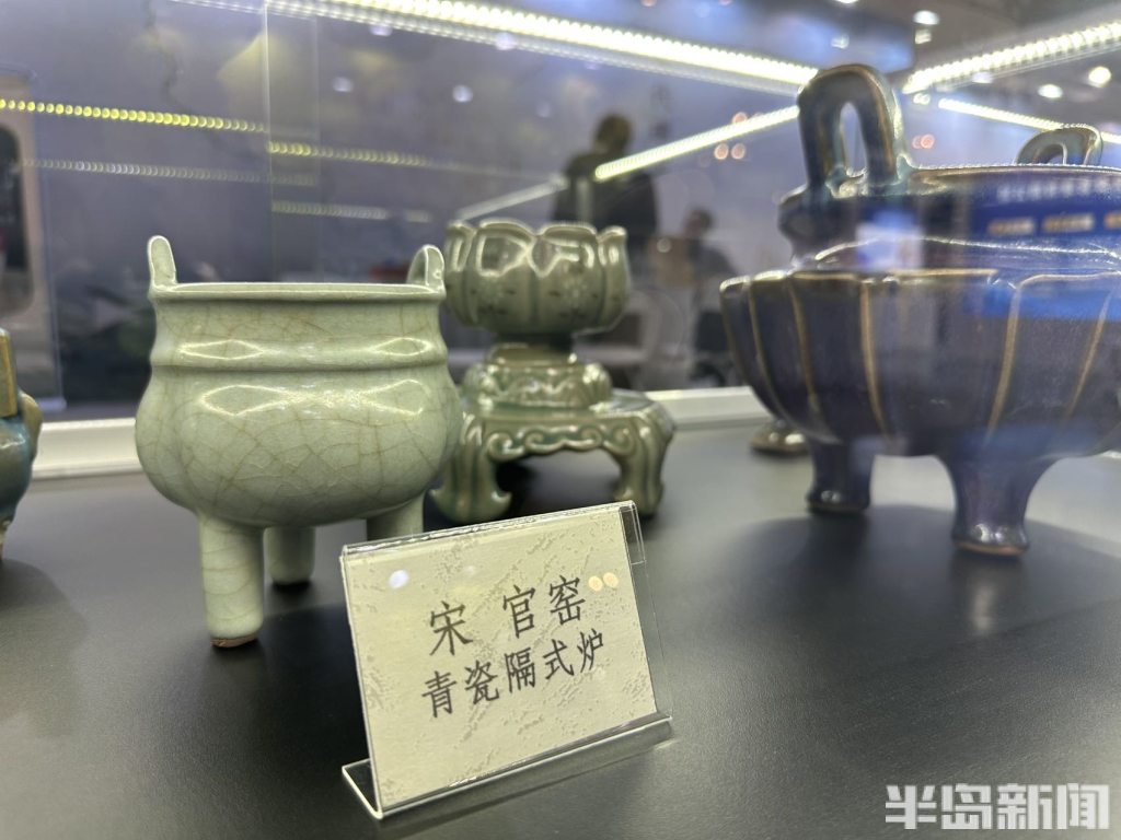 官窑瓷隔炉、越窑密室青瓷莲花型茶盏、定窑紫金釉茶盏……在大观宋瓷展馆现场,难得一见的真、精、稀宋瓷珍品,完美地展现了千年前的制瓷工艺。“这次展出的有宋代的汝窑、官窑、哥窑、钧窑和定窑五大名窑的瓷器,很多在其他展馆都看不到,”大观宋瓷展览馆馆长于小东介绍,参加规模如此盛大的国际性展会,主要是通过这个平台充分展示中国宋代的瓷器,让更多人甚至是国际友人了解中国的瓷器文化。