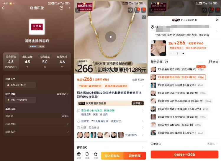 👉消费者要警惕虚假宣传,部分商家会夸大产品的质量、纯度等,如声称是“999足金”,但实际检测可能并非纯金,甚至掺杂了钨、铜等其他金属,消费者收到商品后如有疑问应及时到第三方机构进行检测。