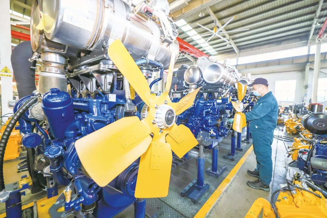 在山推(德州)工程机械有限公司生产车间,智能化生产线满负荷运转,十余道工序上的工人配合默契,平均每45分钟就有一台崭新的装载机下线。这家深耕工程机械领域的企业,产品远销俄罗斯、伊朗、巴西等百余个国家和地区。数据显示,企业一季度订单量同比增长30%,用电量增幅达19.4%,产值自去年四季度以来始终保持两位数增长。公司党委书记、总经理李士振透露,随着LE60-X5纯电装载机等绿色产品市场认可度持续提升,上半年产值有望继续保持强劲增长势头。
