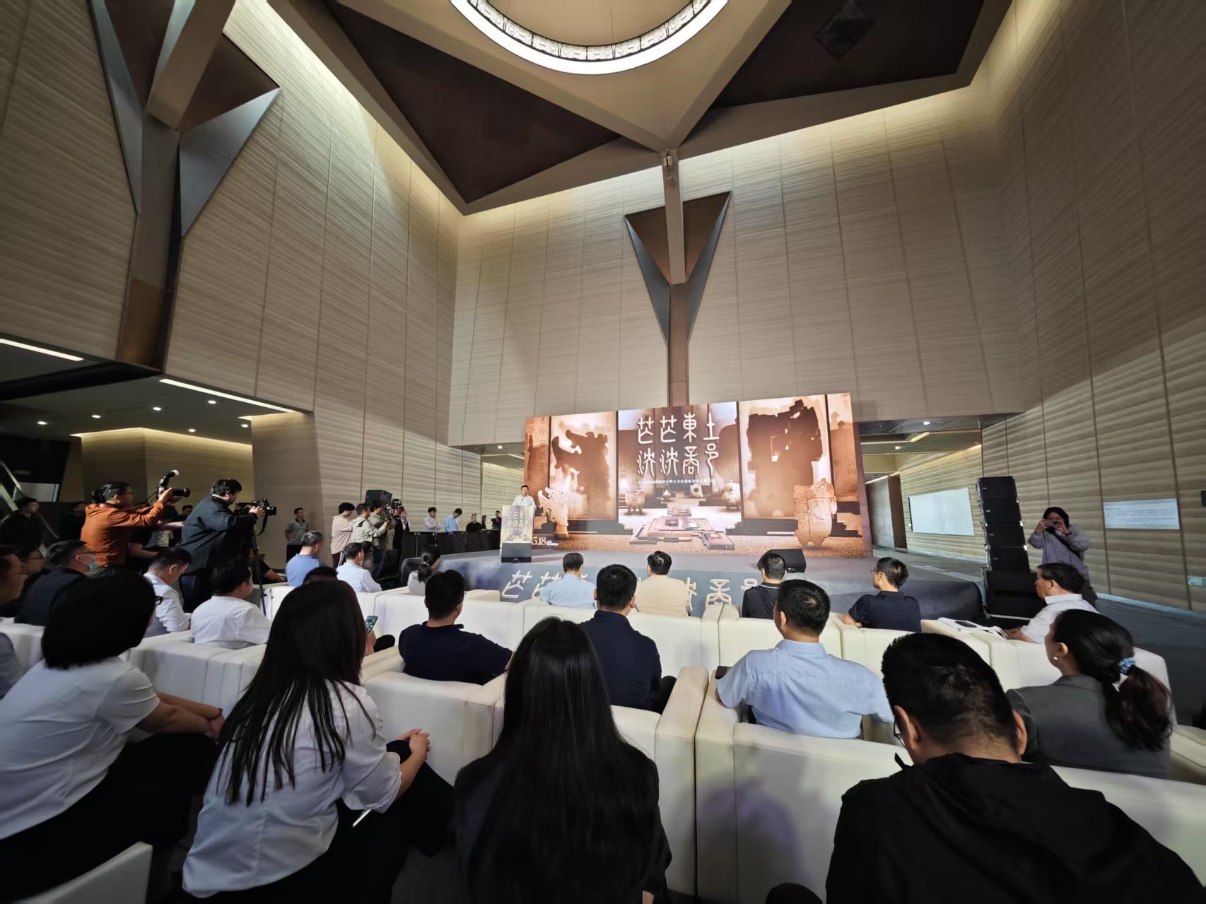 茫茫东土,泱泱商邑。大辛庄遗址是山东省迄今发现面积最大、延续时间最长的商代遗址,是商朝最东方的政治、军事、文化中心,具有极其重要的考古和历史研究价值。活动伊始,与会人员集中观看了主题宣传片《千年寻踪—大辛庄遗址》,通过东方重镇的崛起、沉睡千年的苏醒、甲骨文与王权之谜、从遗址到文明的灯塔、永恒的交响等篇章,借助光影艺术生动展现了三千多年前商文化的独特魅力。