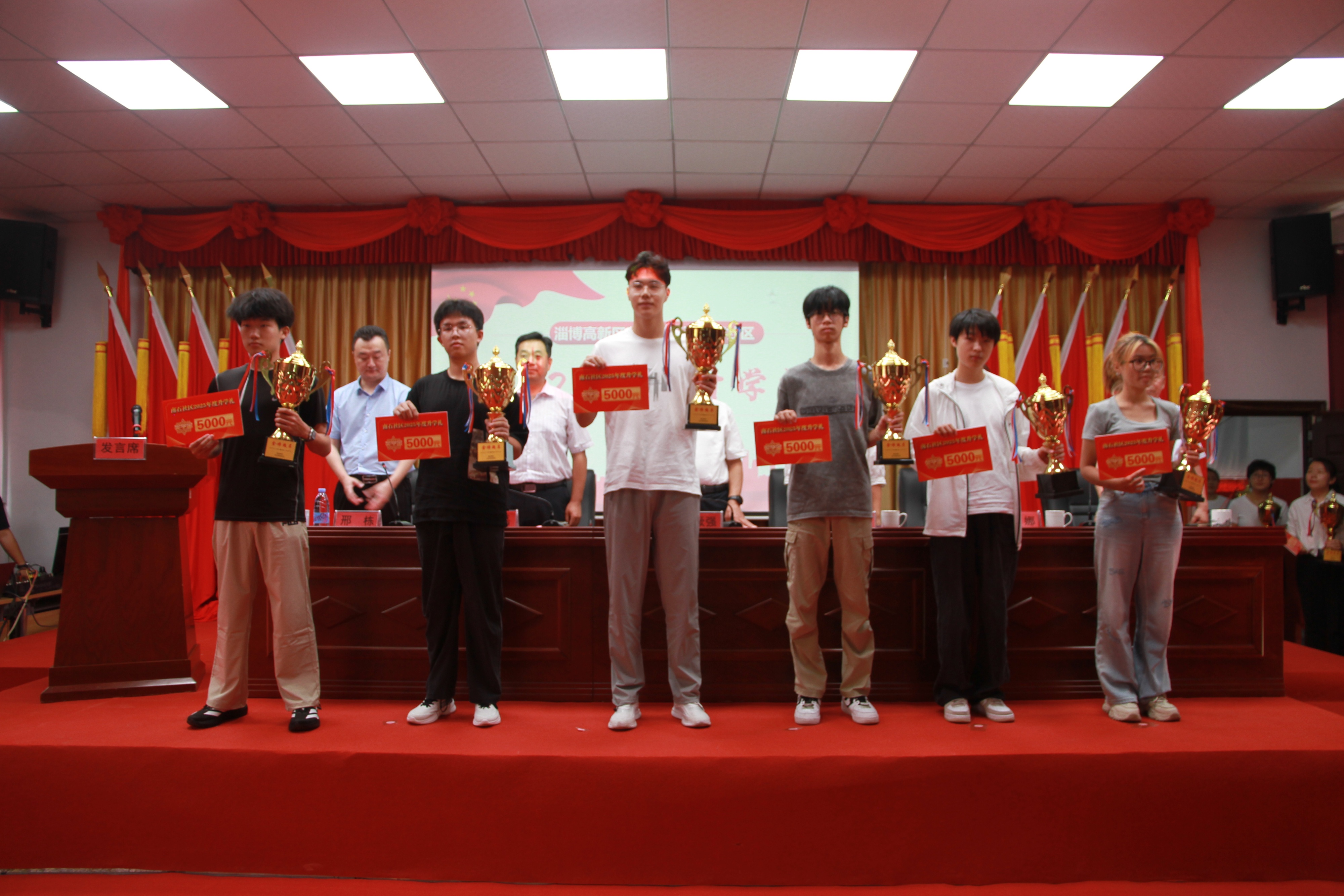 当掌声随“山东大学”“南京航空航天学院”等校名响起,淄博高新区一级职员吕厥强,高新区宣传新闻中心主任宋卫,高新区教育和体育事业中心党组书记、主任杨磊,高新区工委管委会办公室副主任于娜,四宝山街道党工委副书记、办事处主任、一级主任科员邢栋将鎏金奖杯和奖学金交到学子手中。