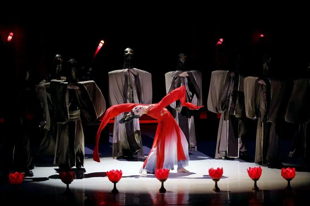 曹植七步成诗,字字血泪,句句惊雷。在凄绝的吟诵声下,气势恢宏的音乐伴着历史的沧桑感扑面而来。大型舞剧《水月洛神》以曹植的传世名篇《洛神赋》《七步诗》和中原传说为依托,将“诗、书、礼、乐、舞”融汇一堂,极富古风古韵之美。