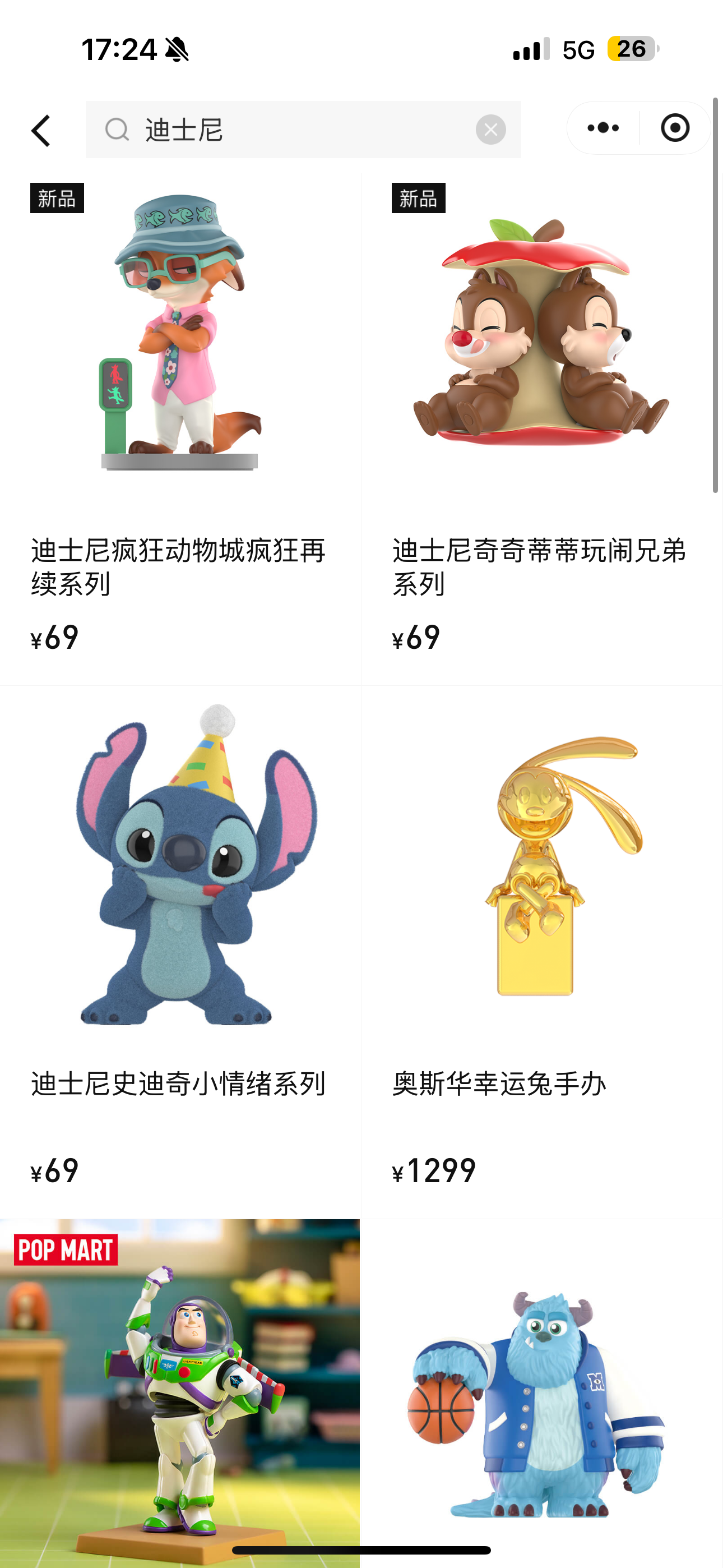 在泡泡玛特小程序搜索迪士尼,有不少相关盲盒产品。