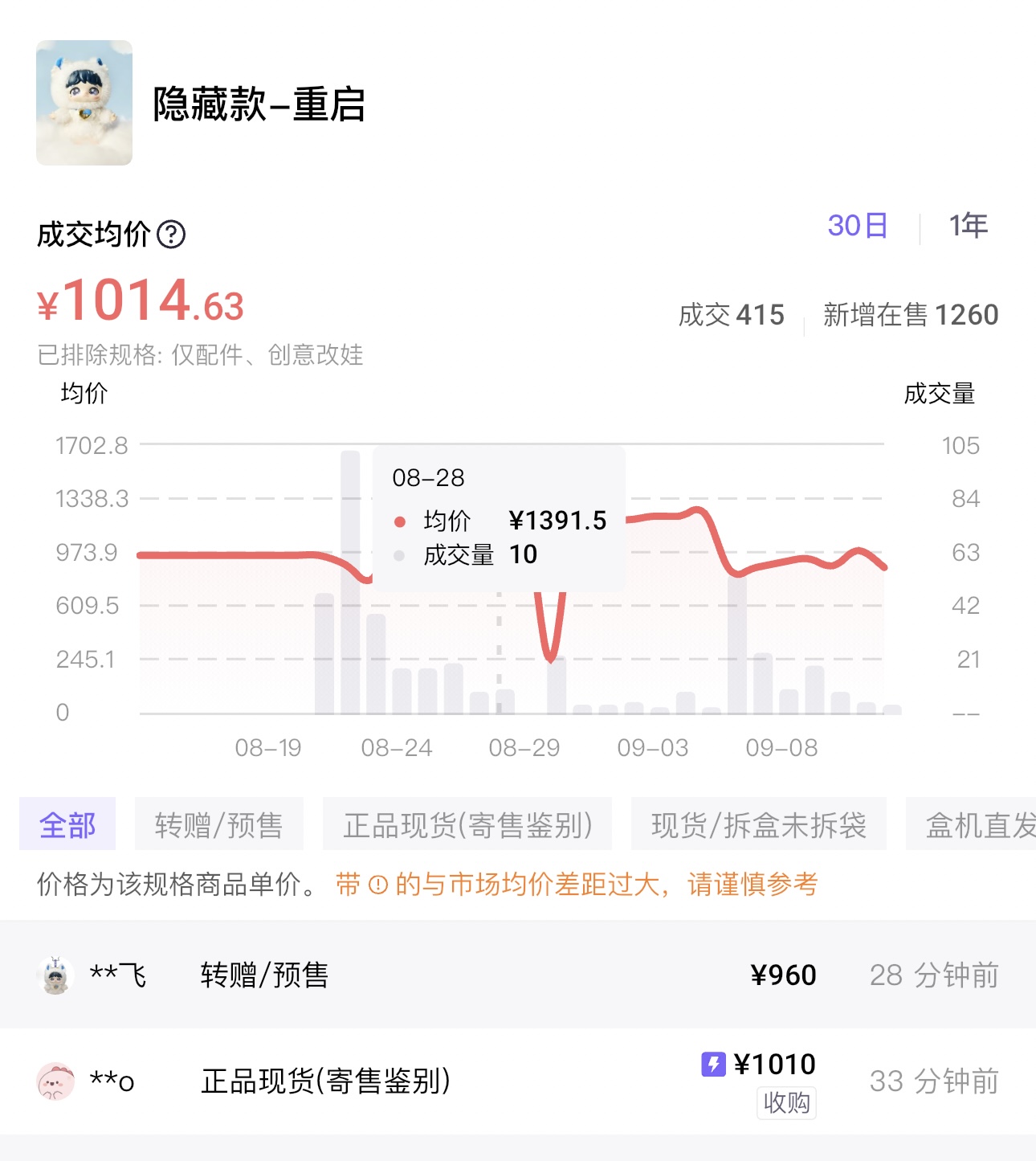 与周深合作的《反深代词》音乐主题联名盲盒,以周深第二张个人专辑为核心创意,将专辑中的情感概念具象化为可收藏的潮玩公仔。该系列盲盒在8月21日上线发售,线上官方渠道3秒内售罄,刷新了泡泡玛特2025年新品最快售罄纪录。而在二手交易平台上,普通款价格溢价,隐藏款更是被炒到1800元左右,足见其火爆程度。