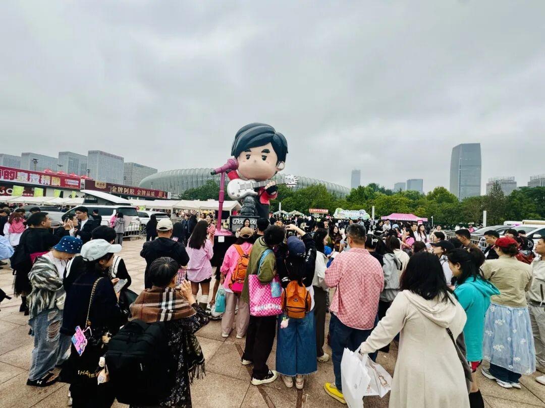 这份用心,甚至早在演唱会筹备阶段就已悄然铺展。作为场馆方的济南奥体中心开展各项服务保障工作;各大商圈更是从一个月前便开始为这场盛会铺垫氛围——从和谐广场到奥体中心,济南在七处商圈设置了Q萌“周同学”大娃(雕塑人偶),成为记录演唱会美好瞬间的“必打卡点”。