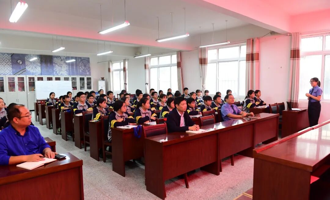 首先,聂学敏与半堤镇党委副书记、镇长王允涛及校领导座谈,围绕在校学生犯罪防治、校园安全、强制报告等,进行了深入交流。随后,聂学敏结合九三阅兵进行法治宣讲,以此次国家盛典中体现出的法治内涵为切入点,引导同学们从中汲取力量,用法治信仰引领成长。