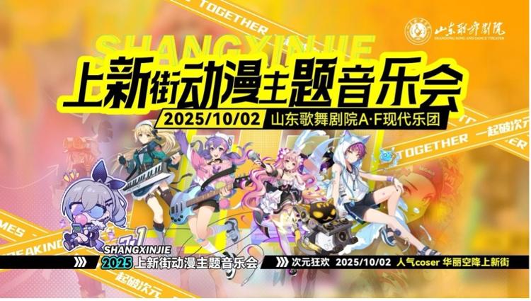 此外,山东歌舞剧院将于10月2日推出《上新街动漫主题音乐会》,为济南上新街历史文化街区注入年轻化、时尚化的艺术元素。