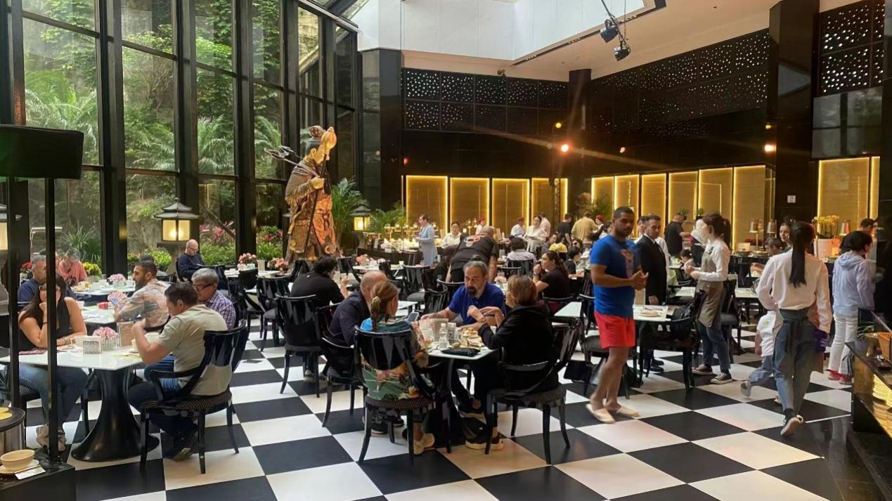 广州花园酒店副总经理梁健芬表示:“10月1日是入住高峰期,美团旅行带来的‘00后’年轻新客同比增幅超15%。花园酒店在美团旅行推出‘住宿+双人自助晚餐+下午茶+酒店文化艺术导览’打包套餐,酒店内部也有20万片金箔拼成的红楼梦壁画,还设有国内住宿业主题博物馆。游客能以酒店为文化体验目的地,深度感受岭南风情。”2025年国庆假期,广州花园酒店餐饮在美团旅行单日曝光人数将超6万人次,餐饮单日预订增速同比上涨超30%,酒店成为传承岭南传统文化、地道美食的体验目的地。