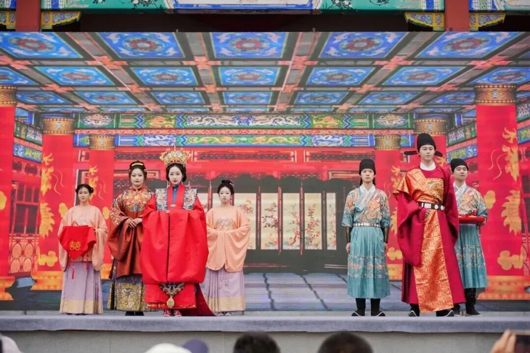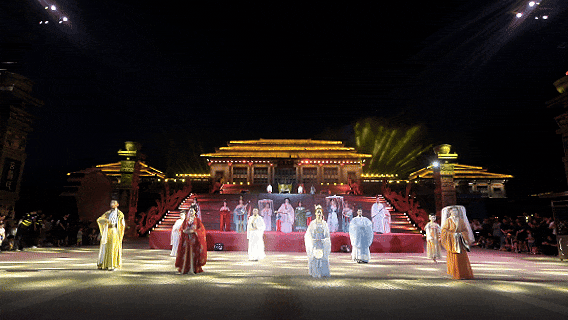 活动内容:景区推出各朝代民族服饰大秀巡游、民俗非遗市集和民族特色互动以及高竿不倒翁、烟花木偶戏等非遗绝技表演,百名NPC零距离互动,《梦回西楼》《西游大联欢》等超百场演艺等,精彩不断。