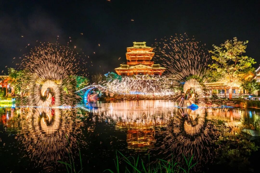活动内容:曹州牡丹园“飞火流萤”盛大开启!十余种免费互动游戏带您一键“穿越”古今,与NPC沉浸互动,玩转银票赢好礼。千年绝技——打铁花,抛绣球招亲等从早到晚,欢乐不停。