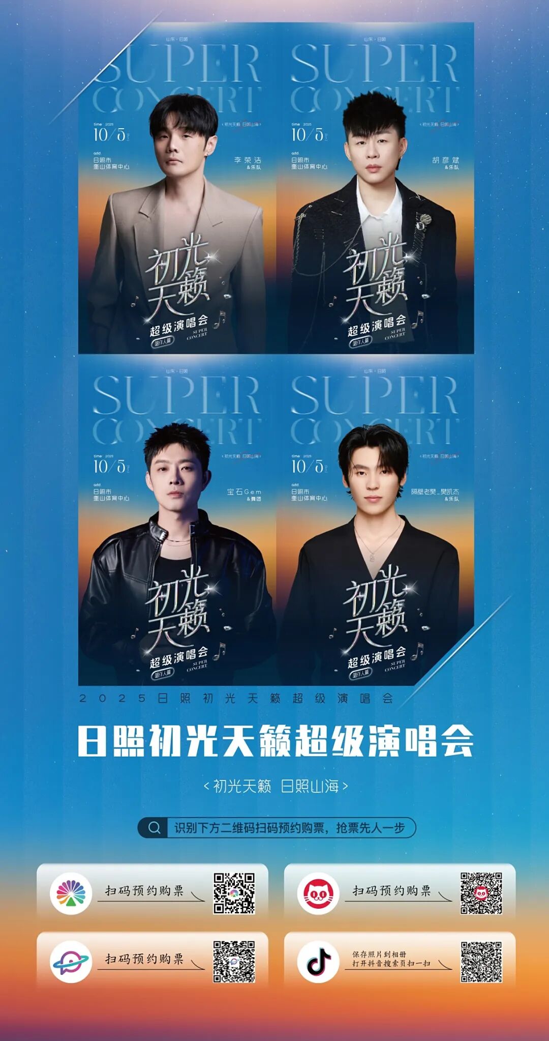 活动内容:李荣浩、胡彦斌、宝石老舅、隔壁老樊四位唱作人齐聚献唱。全市20家景区联动,凭演唱会票根可免日照天台山、刘家湾赶海园大门票,享太阳客栈、太阳风情水镇折扣等优惠。
