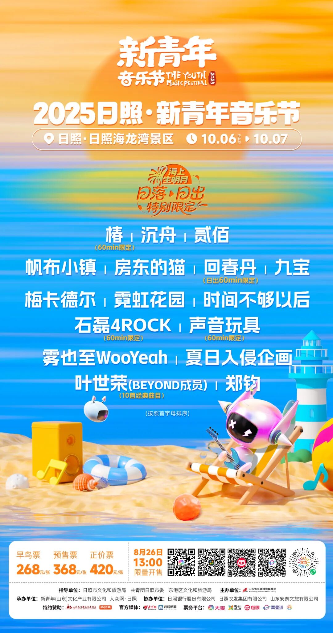 活动内容:16组乐队/歌手齐聚日照海龙湾风景区同万人共度中秋团圆夜、共迎旭日东升时。