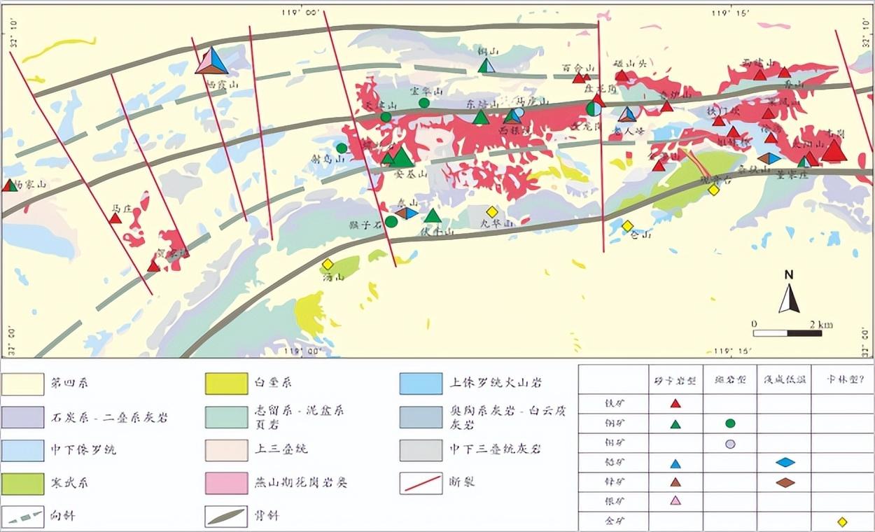 宁镇山脉矿产资源分布简图