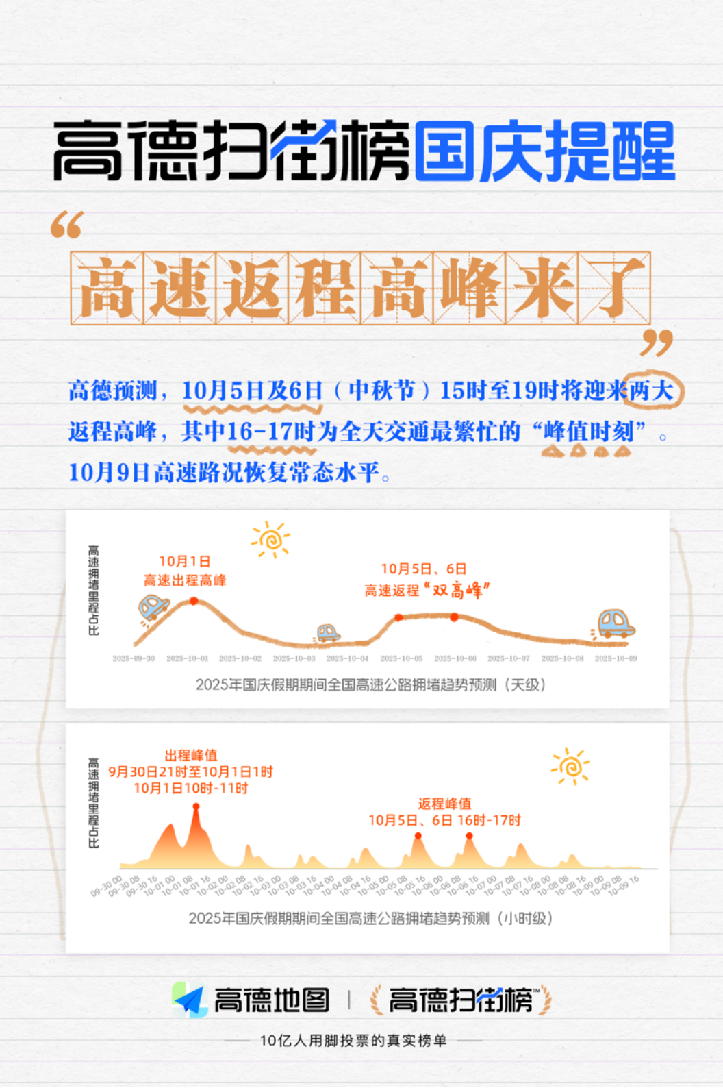 高德扫街榜发布:国庆返程高峰提前至10月5日
