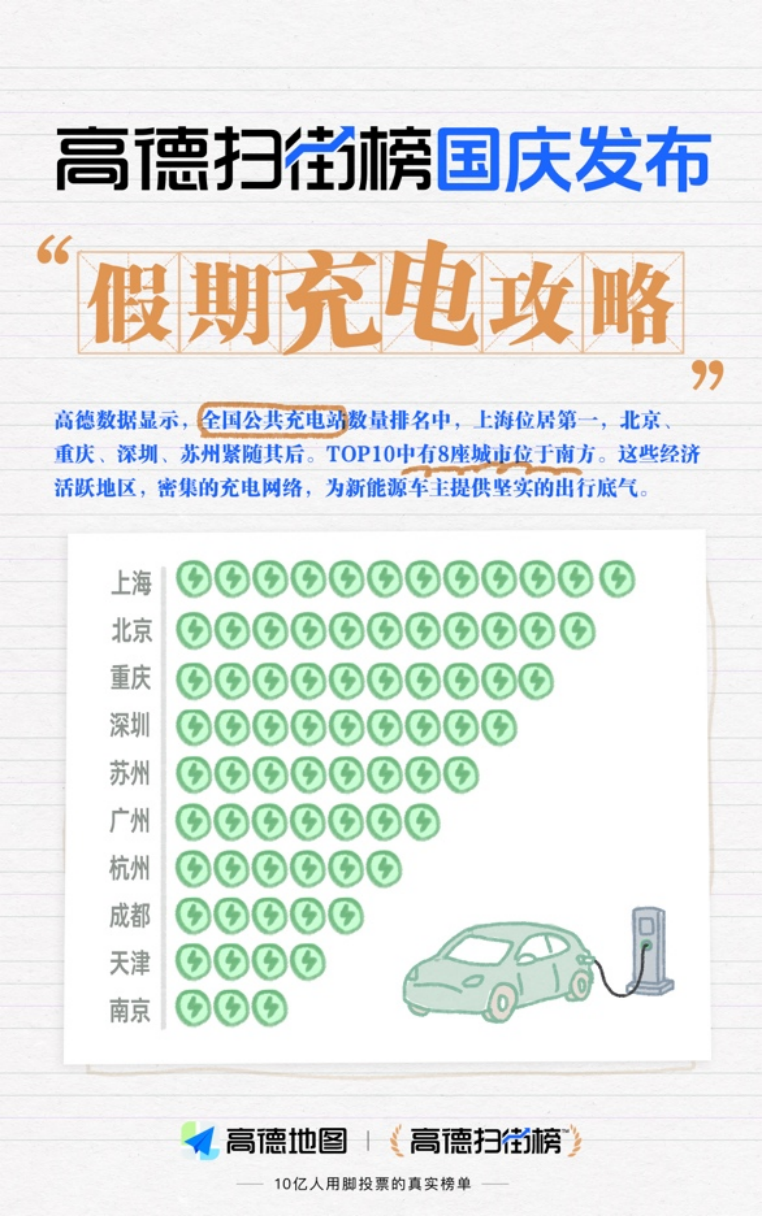高德数据显示,国庆首日全国充电站日均搜索用户数同比增长42%,创同期新高,反映出新能源汽车用户的活跃度显著提升,节假日绿色出行已成为主流趋势之一。