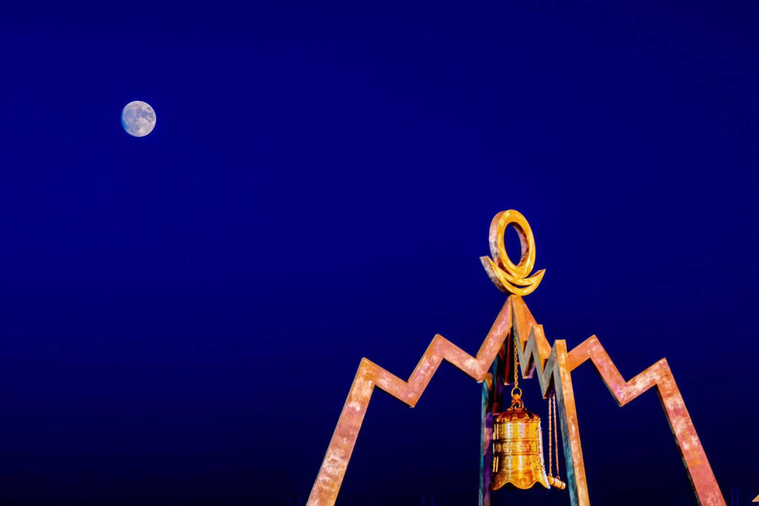 西城门之上,一轮真月在天、一轮幻月依墙。舞者翩然其间,衣袂当风。她们以城楼为舞台、苍穹为幕布,把中秋神话与浪漫化作可感的飞天梦境。