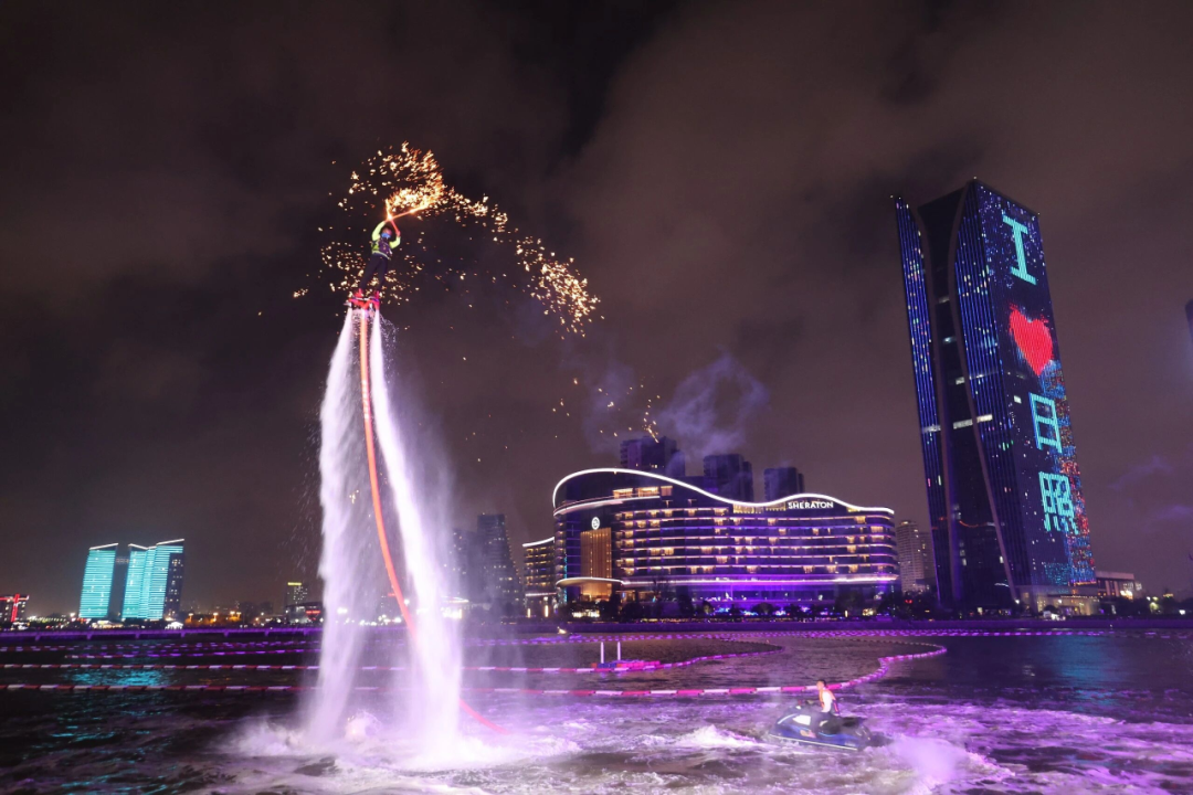 海上嘉年华飞人表演,双节假期每日上演,灵动又震撼。待表演落幕,漫步金沙滩,让海风裹着团圆暖意,留在中秋记忆里。