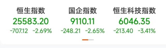 13日,港股下挫,互联网股集体走弱,软件与半导体板块局部活跃。截至发稿,恒生指数下跌2.69%,恒生科技指数下跌3.41%。