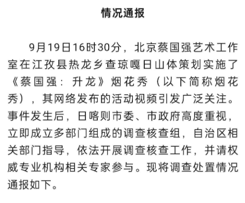 官方通报“蔡国强烟花秀”事件调查核查情况:多人被免职