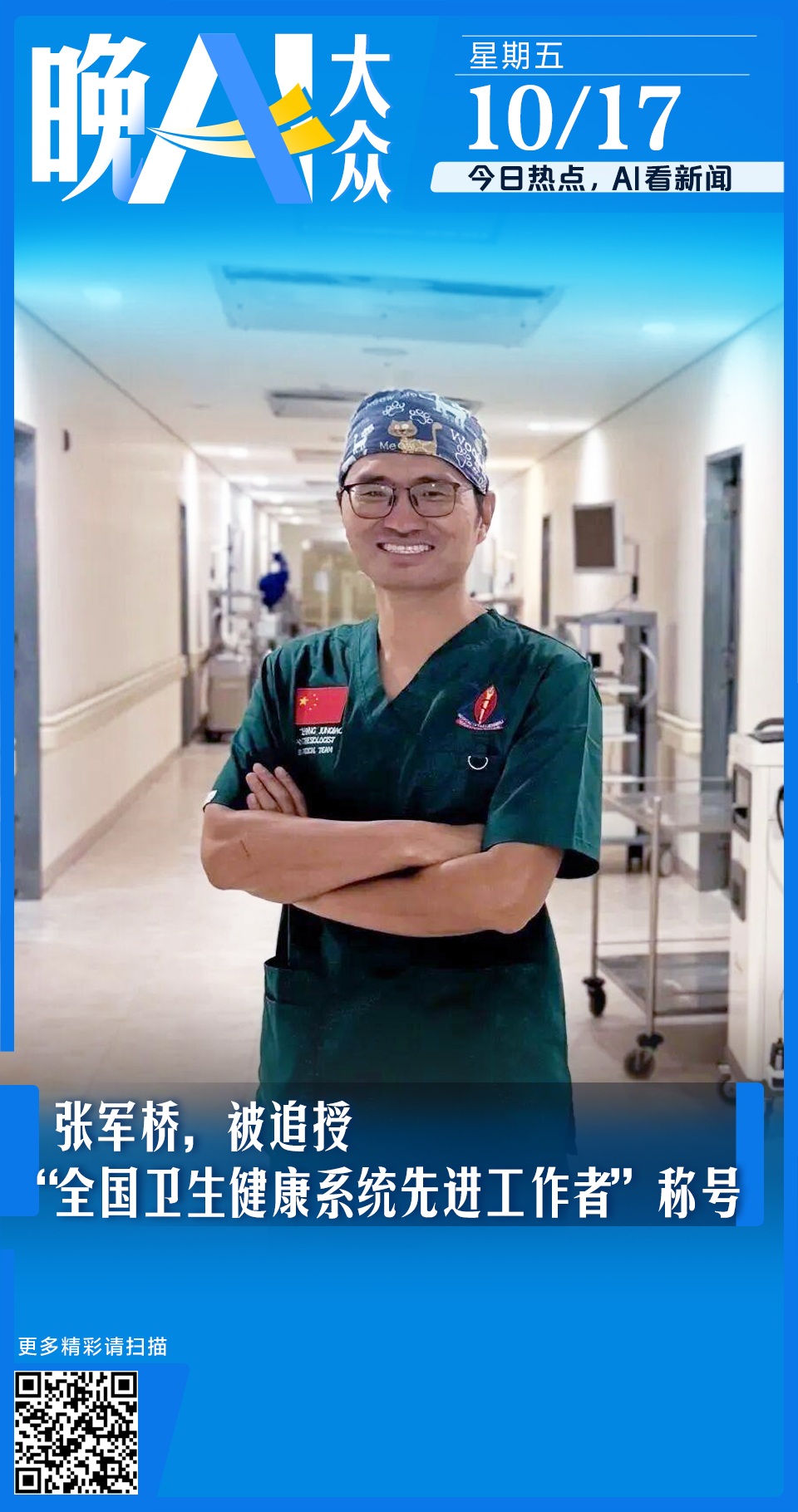 今天,“健康中国”微信公众号发布消息称,张军桥同志被人力资源社会保障部、国家卫生健康委、国家中医药局、国家疾控局追授“全国卫生健康系统先进工作者”称号。详情>>