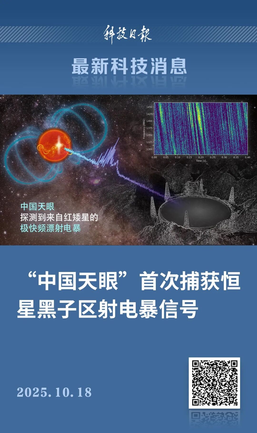 近日,以北京大学地球与空间科学学院田晖教授和博士生张佳乐为主的研究团队利用“中国天眼”FAST(500米口径球面射电望远镜),首次探测到来自恒星黑子区域的毫秒级射电暴信号,为直接探测恒星小尺度磁场、揭示恒星磁活动的起源提供了全新的观测手段。详情>>