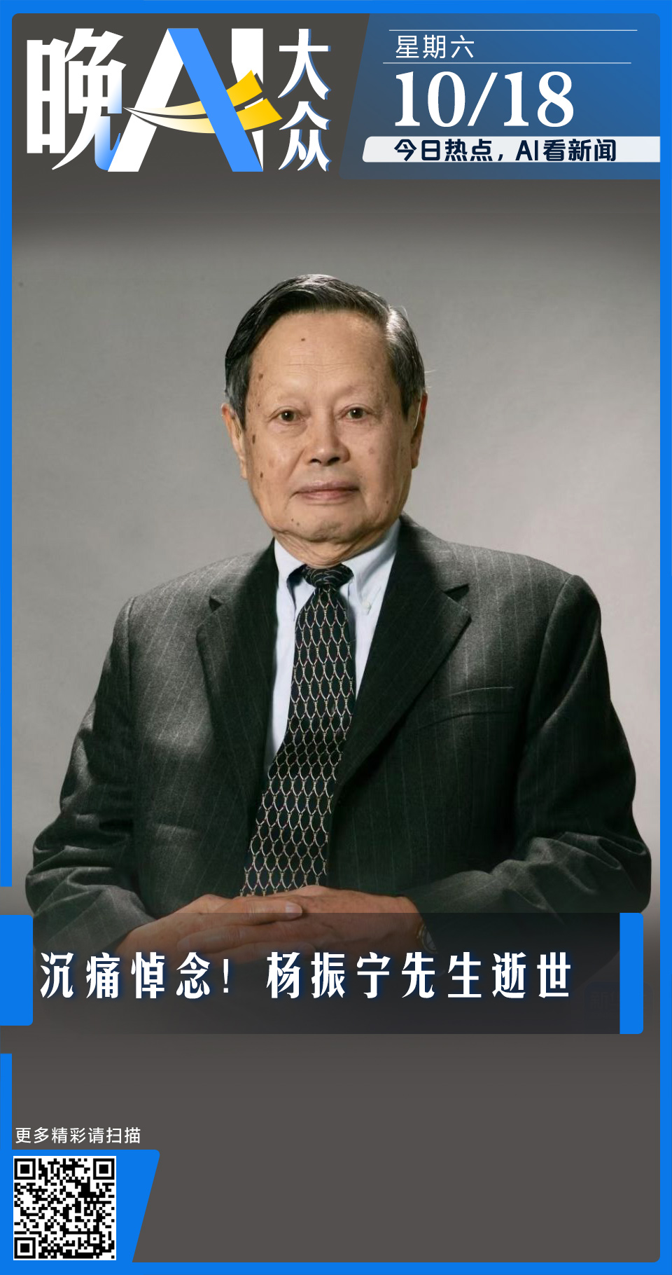 晚AI大众|沉痛悼念杨振宁先生逝世;“中国天眼”FAST再立新功
