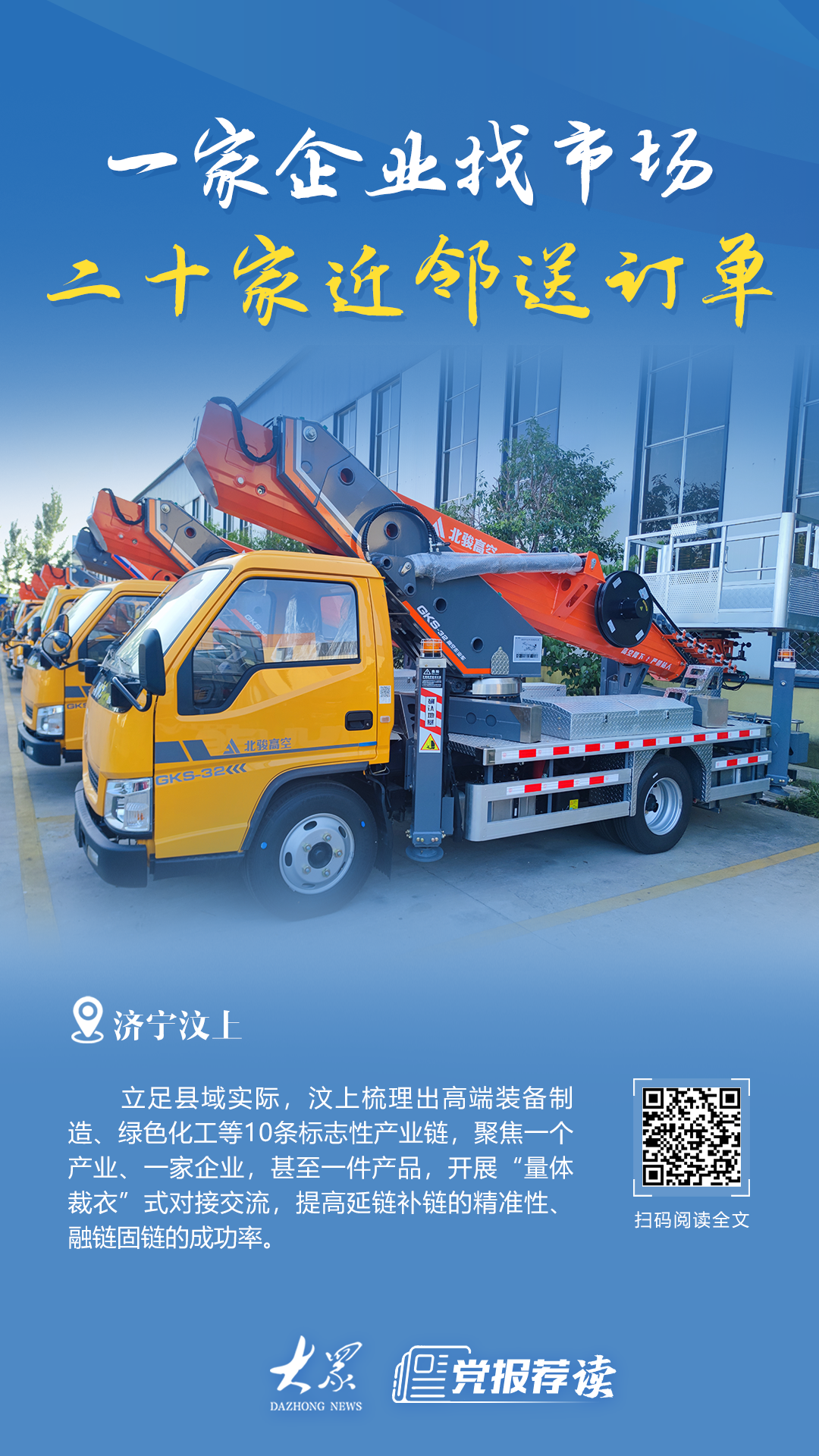 以工程机械产业为例,当地针对“零部件配套强、整机龙头企业少”的现状,明确“主机与配套协同”发展方向,精准开展延链补链强链活动。今年以来,汶上县3次组织工程机械企业赴外地开展产业链协同对接活动,通过交流洽谈、推介发布,促成7家企业达成合作意向。