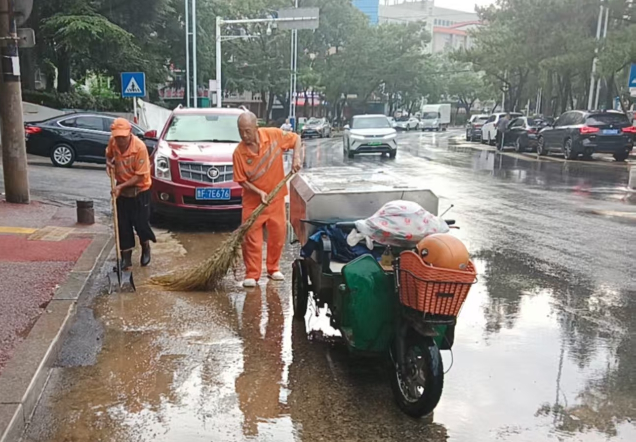 烟台芝罘:暴雨袭芝罘 环卫工人雨后全力出击 擦亮1.7万㎡流黄道路