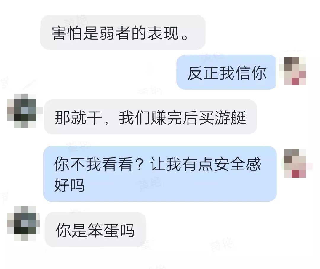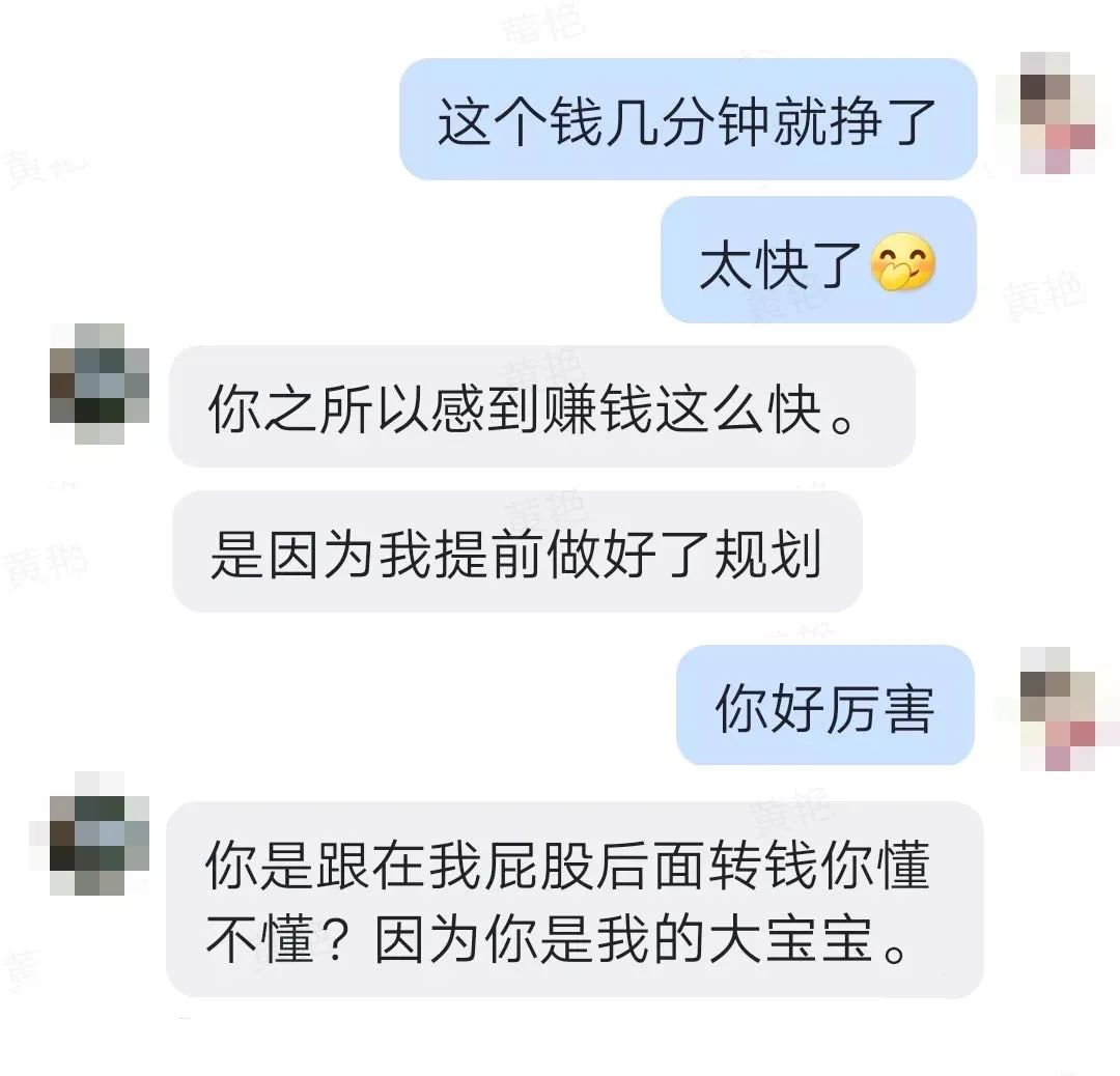 “5000就可以吗?”“可以试试,觉得还行再加大投入”“你真贴心”“我只对燕宝宝好”“谁是你的宝宝?油腔滑调!”决定小试一笔后,我觉得我们的关系有了微妙的变化,我有点兴奋又有些紧张,我说不清楚,自己到底在期待什么。我扫了他发来的二维码,登上了网站,注册了账户。他又发来一个陌生人的银行账户,说我的钱转到这个账户就会充值到账户中。