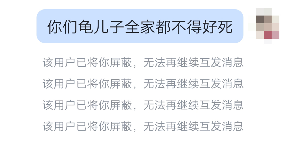 “你全家都不得好死!!!”这是我留给他的最后一句话,不过可能他根本没有看到,因为系统提示,他已经将我屏蔽掉了。