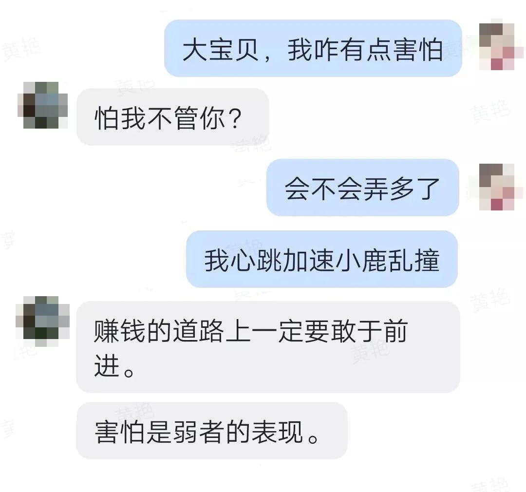 不知道是太想他,还是太想赚钱,我一大早就发信息找他。他没有立即回复,我心神不宁。几个小时后,我终于等到他的信息。这天的聊天我整个人似乎都在发光,他对我说了很多温柔体己的话。最后他告诉我网站有活动,就专门为新人设置的。而我,显然就是新人。
