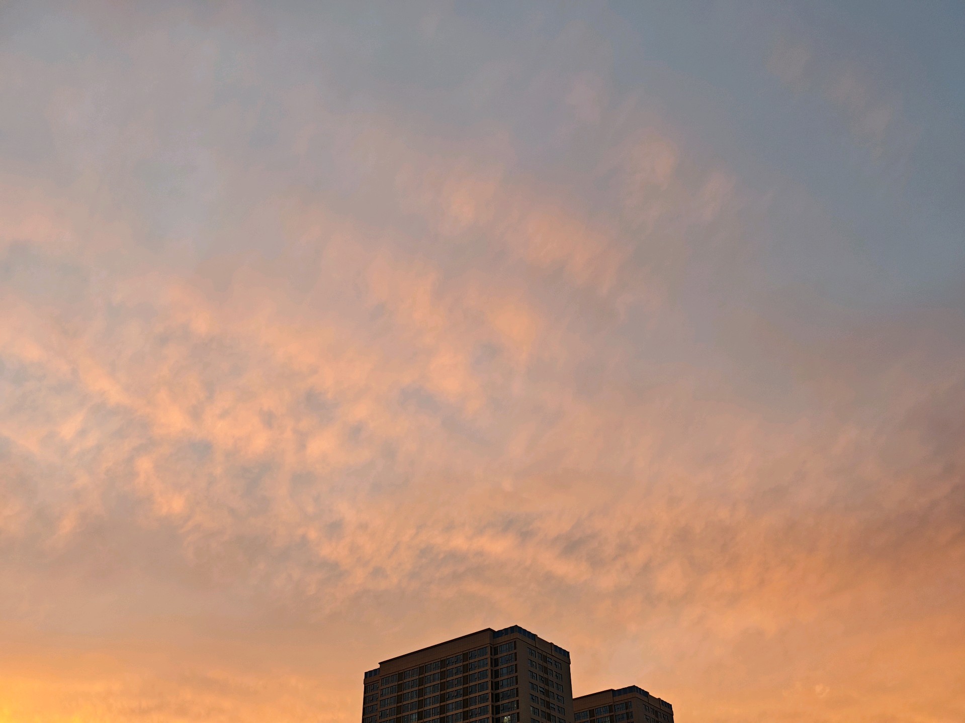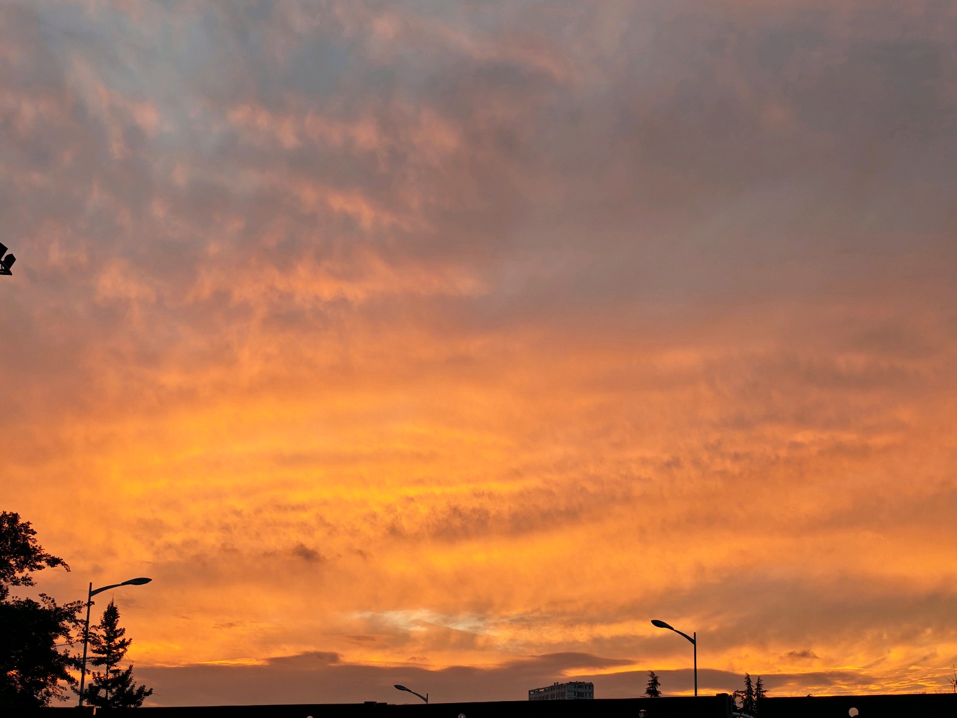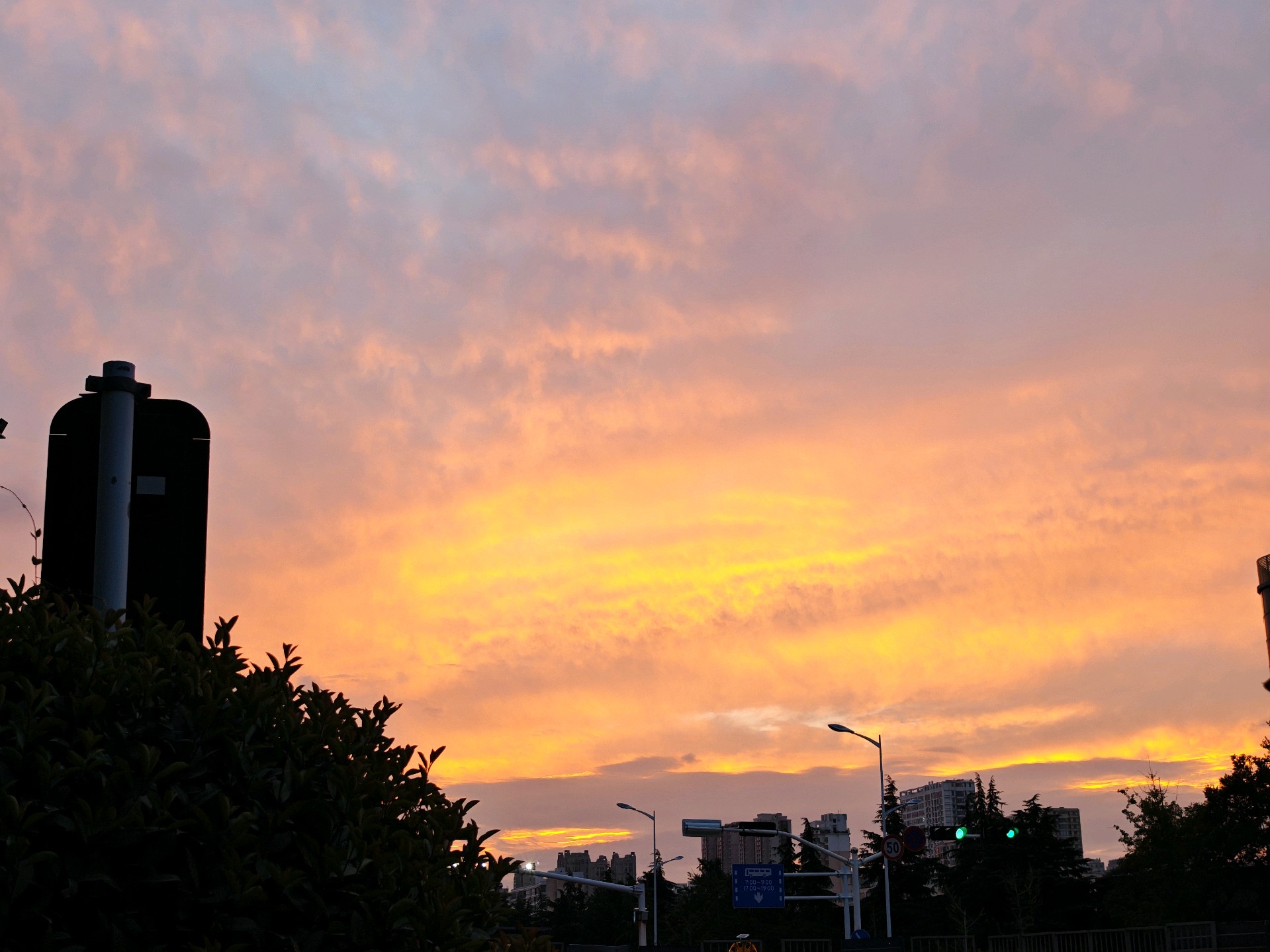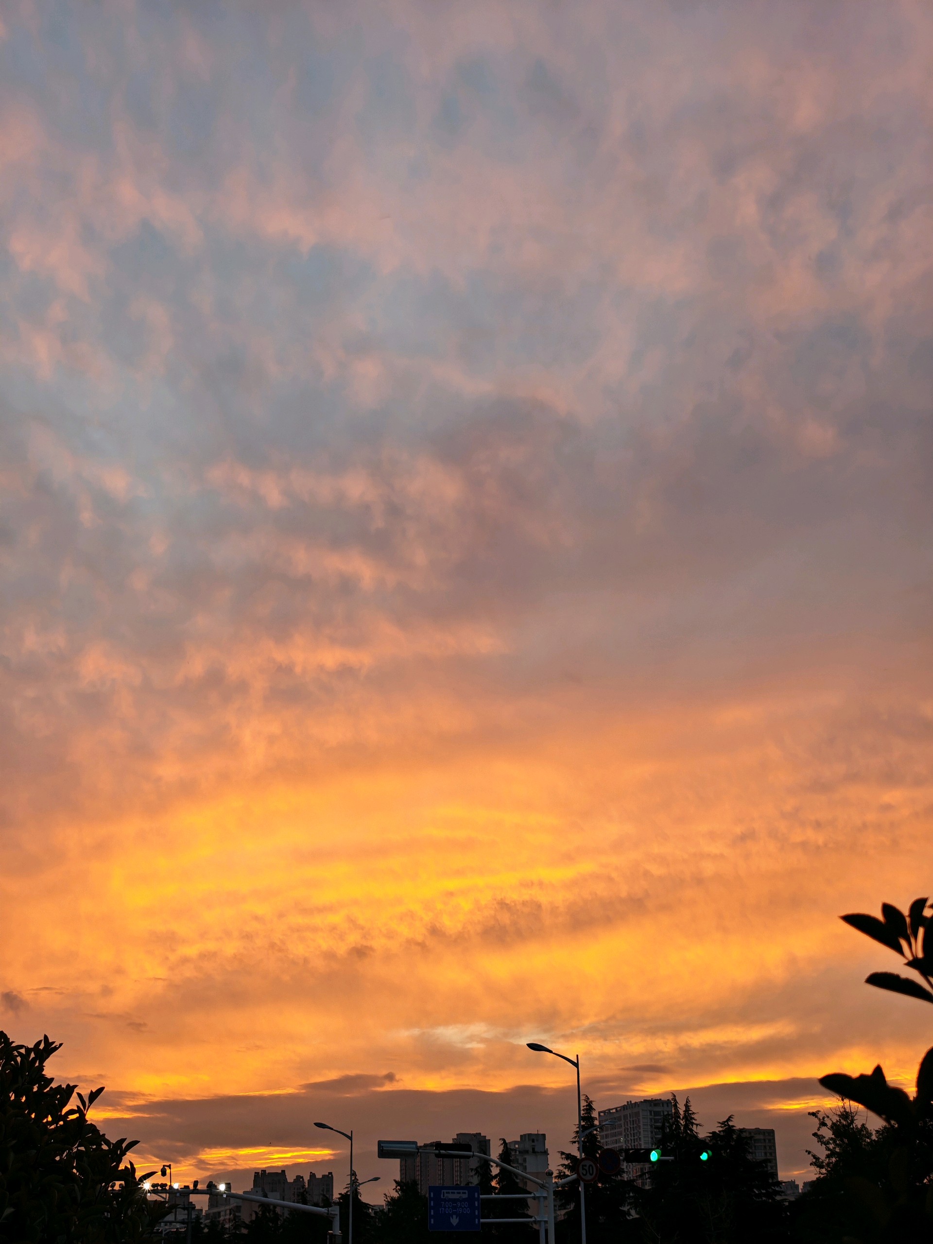 夕阳西下,橙色的晚霞映照着天空,如诗如画!