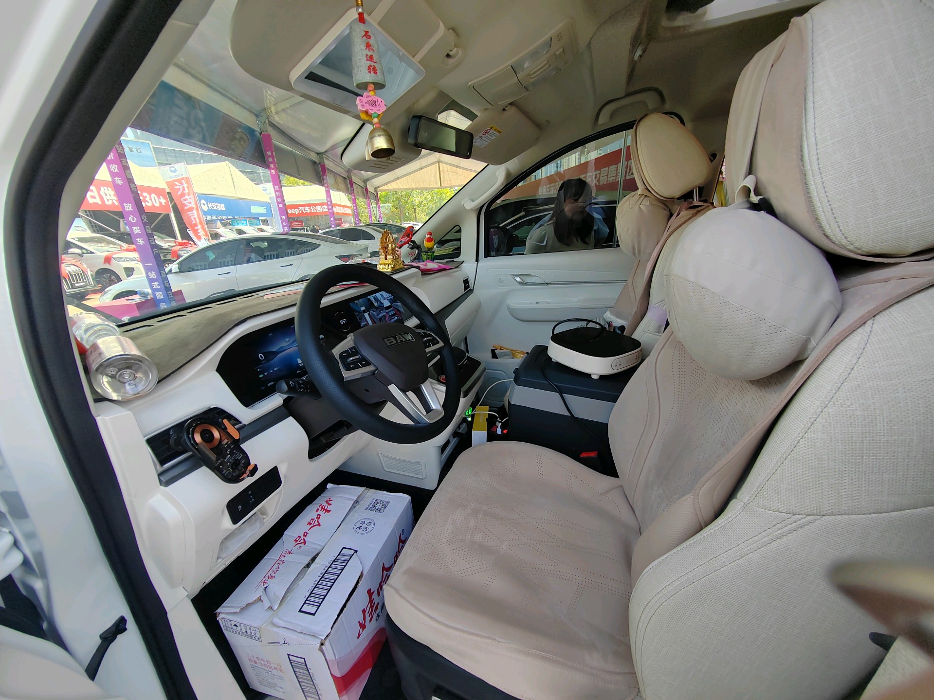 车内装饰简洁大方,米色座椅搭配黑色方向盘,给人一种温馨舒适的感觉。