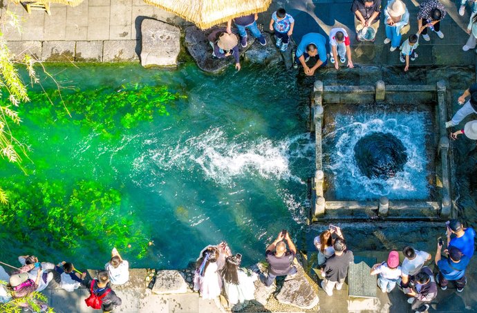 9月25日,壹粉“捕鱼达人007”向齐鲁壹点情报站发来情报,秋日的章丘明水古城似江南画卷,百脉泉群活力四射,梅花泉五个泉眼喷涌如梅朵绽放,墨泉似浓墨倾泻。古城内河道清澈,乌篷船摇橹而过,拱桥优雅,垂柳拂水,尽显江南温婉,令游人沉醉其间、流连忘返。