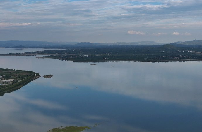 9月25日,壹粉“王东元”向齐鲁晚报官方客户端齐鲁壹点情报站发来情报,临沂市云蒙湖畔风景秀美,富有诗情画意。走近云蒙湖畔,湖光山色,湖水一线天,景色迷人。湖水清澈得见底,鱼儿自由游走,鸟儿在湖边觅食。蓝天白云在水中遥相呼应,小岛似船儿一样浮在水面上。从空中俯瞰,云蒙湖宛如璀璨明珠,镶嵌在大地之上。