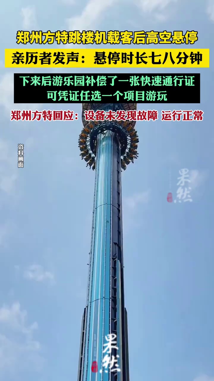 郑州方特跳楼机高空悬停七八分钟(极目新闻)